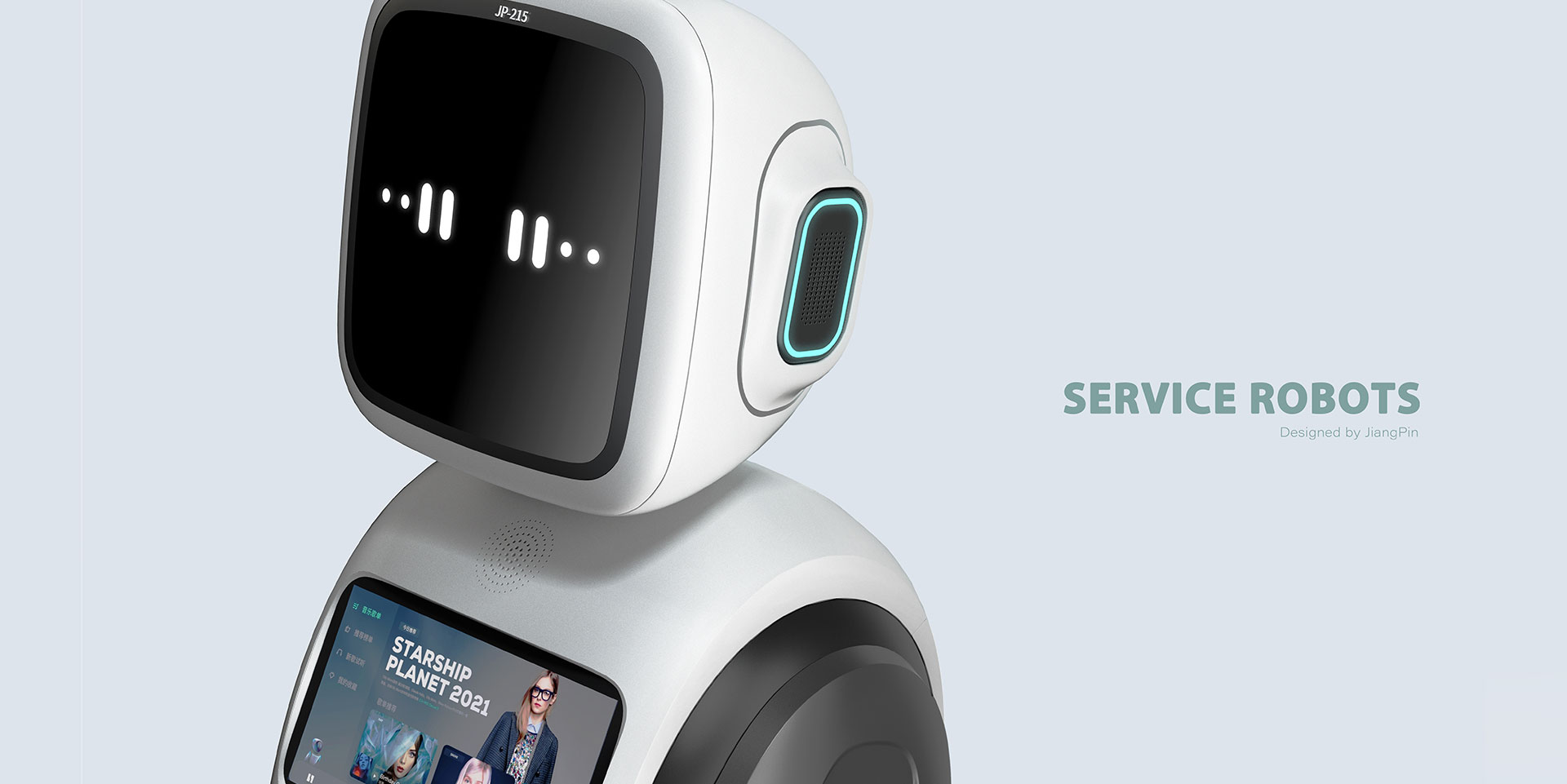 智能服務(wù)機(jī)器人設(shè)計,整體造型簡約大氣,這款機(jī)器人可以通過大屏的表情與人類進(jìn)行簡易的交互,擺脫機(jī)械的冷漠感。胸口的觸摸屏可提供需要的服務(wù)信息,是未來智能家居的好助手。