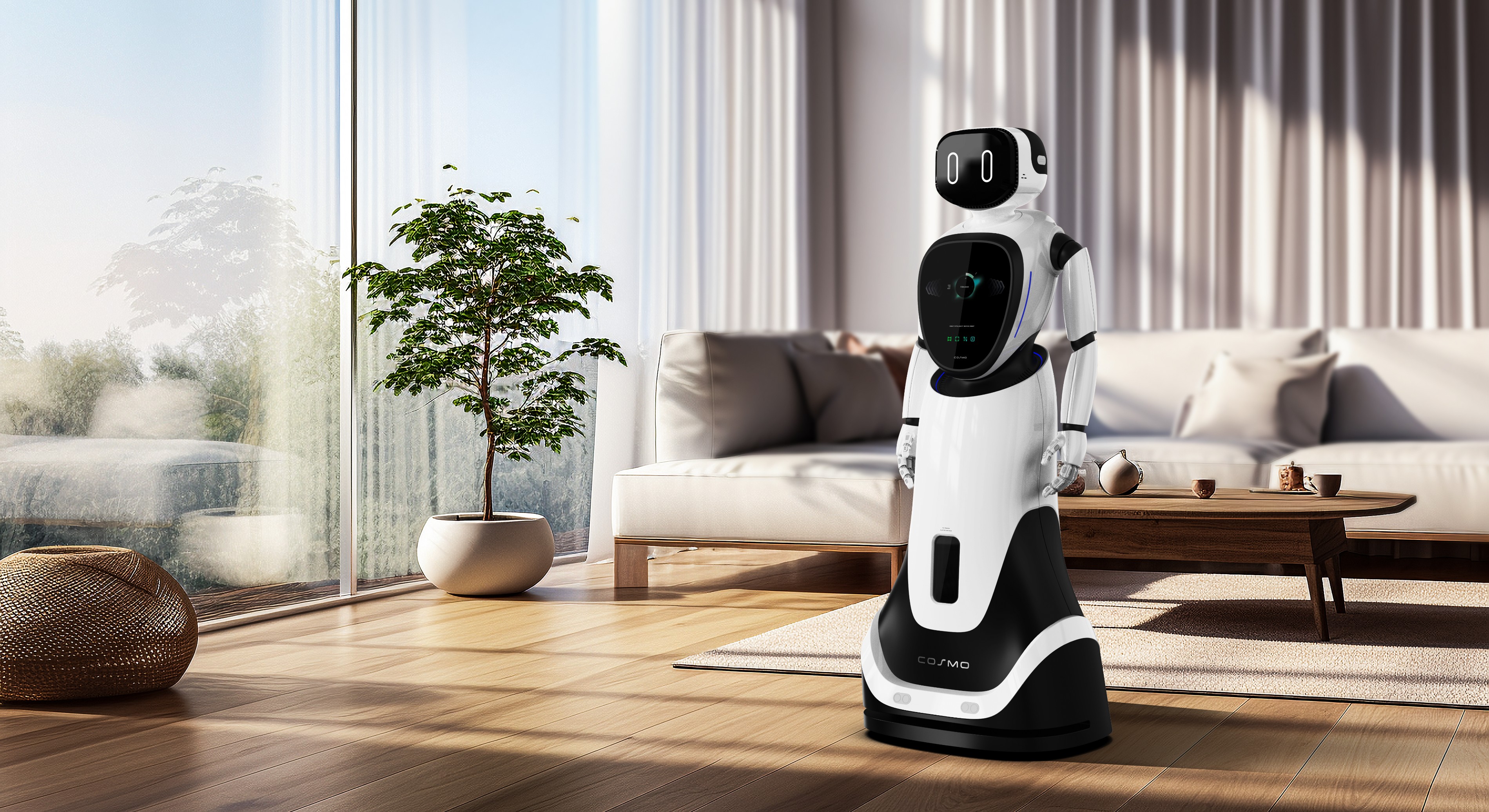 圖中的人形機器人,它的外觀設(shè)計極具未來感與科技感。整體以白黑為主色調(diào),搭配流暢線條,營造出簡潔大氣的視覺效果。頭部造型獨特,帶有類似“眼睛”的顯示區(qū)域,增添了靈動性。身體部分有顯示屏,可展示相關(guān)信息,手臂等關(guān)節(jié)設(shè)計精巧,既保證了機械結(jié)構(gòu)的實用性,又讓整體外觀更具協(xié)調(diào)性,仿佛是從科幻世界走來的智能伙伴,能很好地契合各類科技場景的應(yīng)用需求。